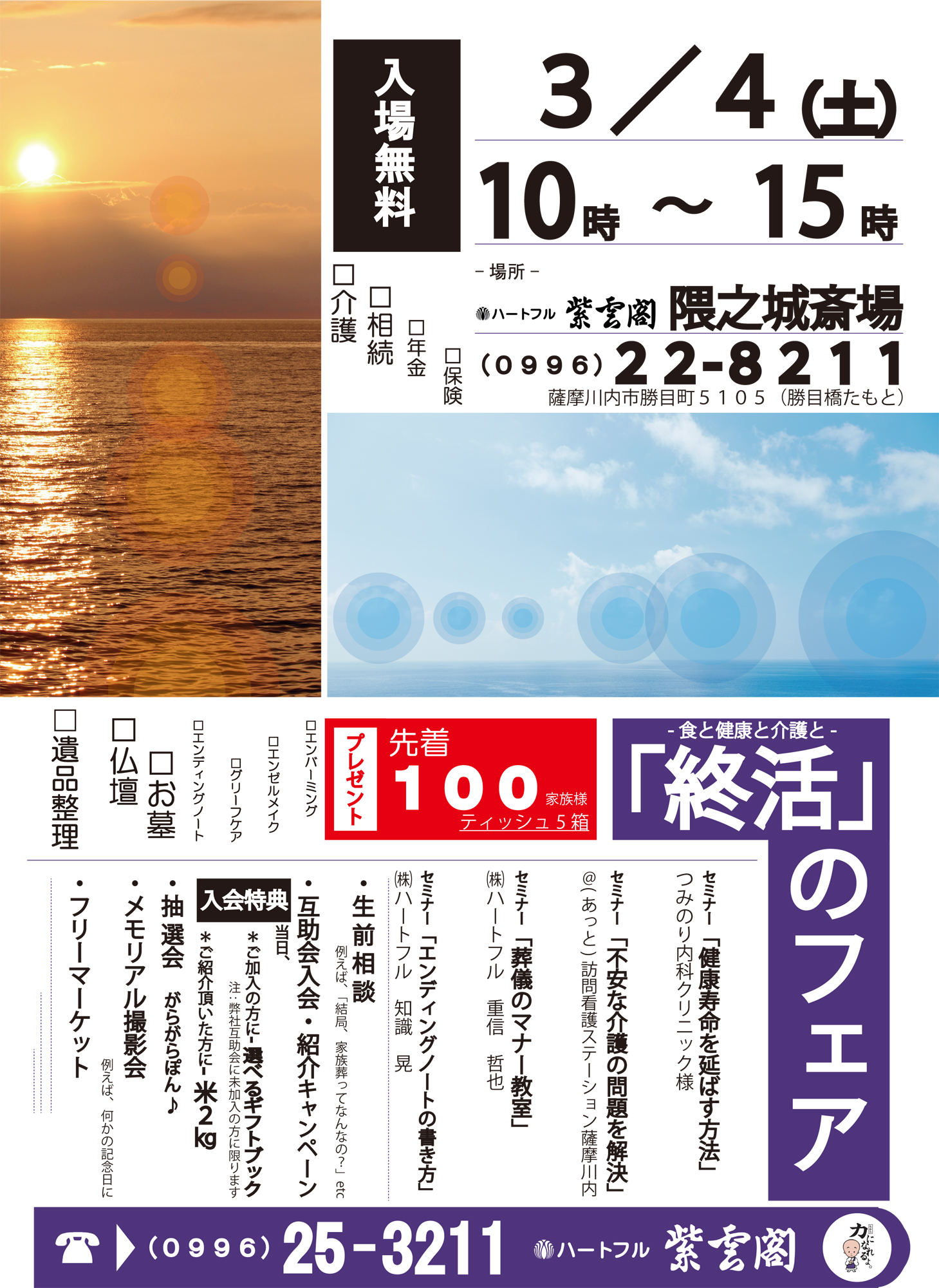 3/4(土)、隈之城斎場にて、感謝祭を開催いたします。